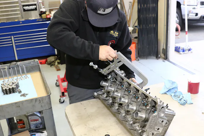 The stock cylinder head and valvetain work great from the factory. Though one bit that we wanted to upgraded was our valves. We hooked up with Ferrea for a set of its stock diameter intake and exhaust valves. Ferrea offers the durability we need with a 20 percent increase in tensile strength, fatigue resistance increased by 20 percent, and valve seat life increased by 25 percent. They install directly in place with the stock springs, retainers, and keepers.