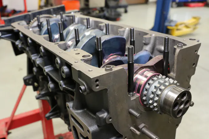 Holding the crank in place is a set of King Bearings MB7039XP XP Series coated main bearings. They are made from a copper lead construction with a nickel plate barrier and a lead/tin/copper babbit overlay over a steel backing. King notes they can maintain a bearing to bearing variance of only +/- .0001-inch. These bearings also feature chamfered oil holes. ARP’s 201-5002 ultra-strong main stud kit ensures that our crank will remain in place when spinning up to 8,000 rpm. We step torqued the mains up to a final value of 60 ft-lbs.