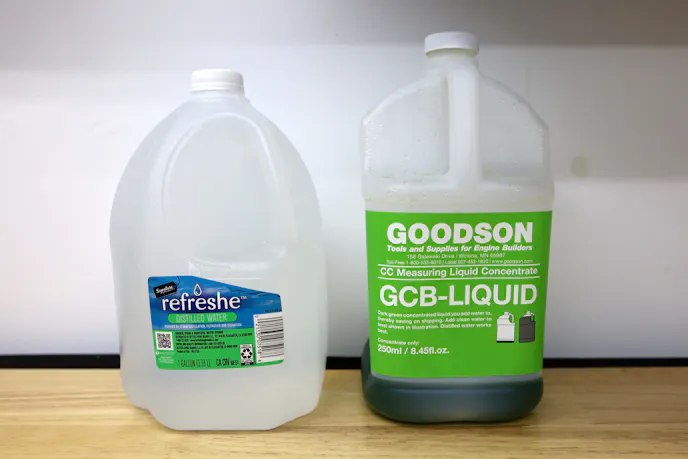 You might need to chase a few air bubbles, depending on the angle of your head on the bench, and the shape of your combustion chamber. While they might look small, they add up, and can skew your measurement if not expelled from the chamber. Once the chamber is completely full with no air bubbles, you’re done. Now all you have to do is read the level of the remaining fluid and you have your combustion chamber volume.