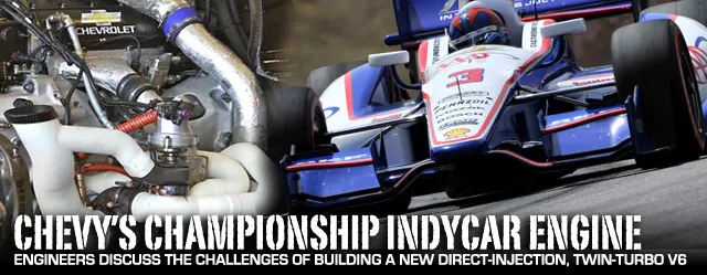 Chevy badges have been found on the cam covers of two previous IndyCar engines. The first was a development by Ilmor in the mid-’80s for the old CART series. That 2.65-liter turbo V8 won more than 70 races between 1986-’93 before Chevy dropped out. When the IRL was launched to compete with CART, Oldsmobile introduced a 4.0-liter quad-cam engine. In 2002 that engine eventually morphed into a 3.5-liter Chevy when the Olds brand was discontinued. When Toyota and Honda introduced dedicated race engines under new rules in 2003, Chevy brought out a Gen IV version based on an existing Cosworth design. Chevy then ended its IRL participation in 2005.