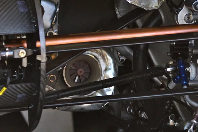 While a number of engine parameters were set by IndyCar, suppliers had leeway in developing the package. Honda chose to run with a large, single turbo mounted inside the bellhousing — a strategy that had worked for Honda with its CART-era turbo V8 engines. Chevy and Lotus (which never made an impact in the series and soon dropped out) went with smaller twin turbos.