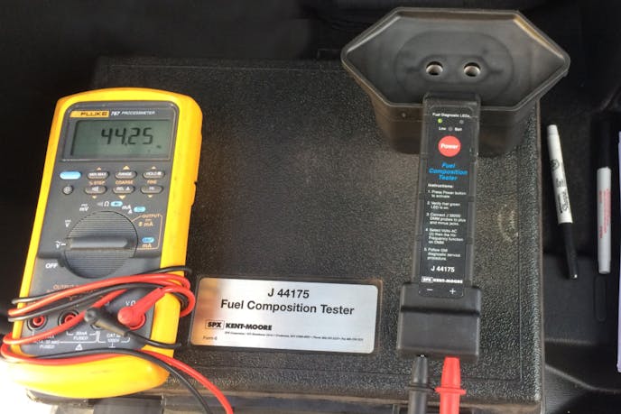 A: There are several inexpensive E85 testers on the market. Most of them merely have you add a specific amount of water into a tube and fill the rest with your E85 fuel test sample. The water will separate out the gasoline and you can read the percentage right on the side of the tube. This is a simple test that can have an error factor of up to five-percent. The more precise tools are the hand-held electronic devices that are within one-percent. There are also OE sensors that are designed to be permanently mounted in the vehicle’s fuel line. Percentages of E85 will vary most often during winter when the percentage of gasoline is increased to improve cold weather starting for Flex-fuel vehicles.