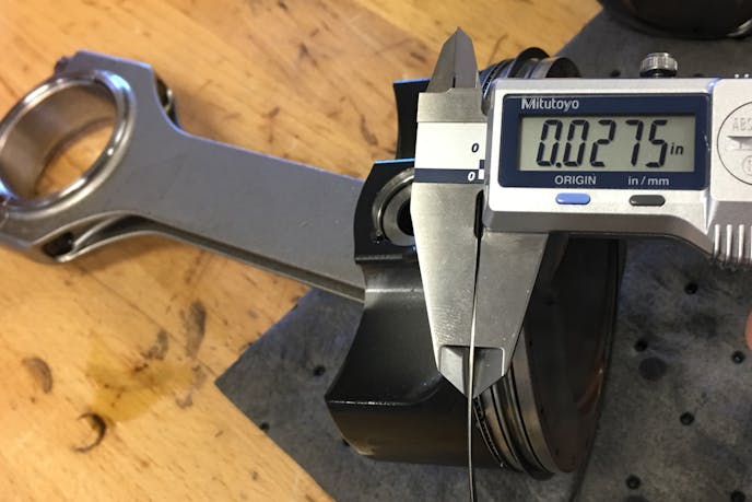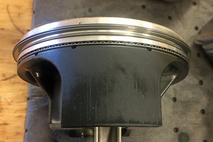 The pistons are custom-designed (of course) billet slugs from Gibtech Pistons. Besides being designed for a stout 16.7:1 compression ratio, they are also designed all around for light weight and low friction. Besides the thin crown and reduced skirt design, the real awesomeness comes in the ring lands and rings themselves. The top ring is a .027-inch thick, by .103-inch radial thickness, diamond-finished steel ring. The second ring is slightly thinner–.0269-inch thick and .112-inch radial thickness–and is a Napier-style ductile-iron ring. The oil ring is a Hastings-style 2mm low-tension ring with a 4.180-inch expander to further reduce ring tension. When all was said and done, Strader has a rotating assembly that only takes between five and six foot-pounds of energy to rotate, instead of the 20 or so an average high-performance engine takes.