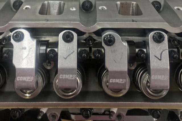 600 pound-per-inch dual conical valve springs from Comp Cams combined with tool steel retainers were used to handle the insane engine speeds Strader is planning on turning with this engine. Tool steel might seem like an odd choice, but they are about one-third lighter than standard chromoly retainers, and only a few grams heavier than titanium.