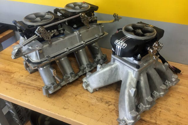 Originally topped off with a single 4-barrel F.A.S.T. Sportsman XFI throttle body EFI on an Edelbrock Super Victor intake, Strader has recently switched to the XFI Sportsman Dual Quad EFI system on top of a CFE-modified Hi-Ram as part of the testing involved with the class, which resulted in horsepower gains exceeding even his expectations.