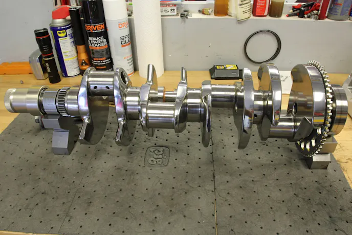 “We’re using the exact same crankshaft, so all of the bearing sizes are the same,” Strader reveals. “We’ll be running just a few thousandths larger bore, as we honed it out and cleaned up the walls. So roughly a 4.200-inch bore with the 3.250-inch stroke for 360 cubic inches. It’ll have the same Jesel belt drive, and the same Dailey Engineering dry-sump system. Really, from the deck up is what’s changing.” However, with a new top end will be the need for new pistons.