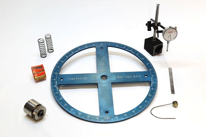 The clay method doesn’t require special tools, only a slice of children’s modeling clay from any arts and crafts store and an accurate ruler. The dial-indicator method requires a dial indicator, mounting base and a degree wheel.