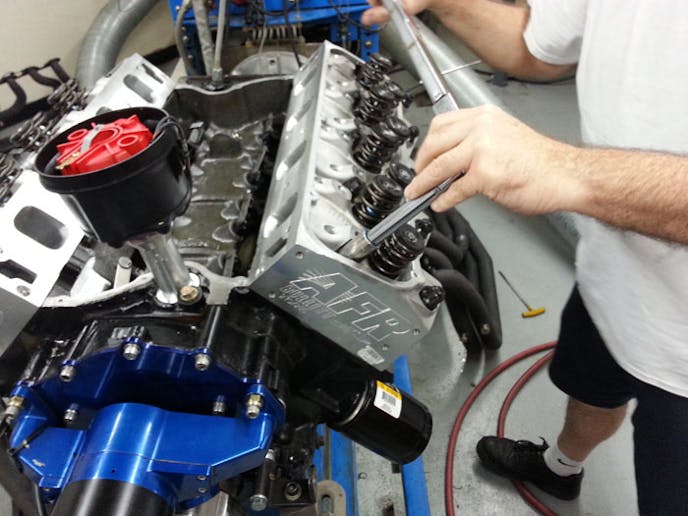 Minimum clearances on depth are 0.080-inch on the intake and 0.100-inch on the exhaust, and radial clearance should be no less than 0.020-inch around the perimeter of the valve. “If your measurements are below the minimum it will be necessary to notch the pistons or replace them all together,” explained Torrecarion. It’s also necessary to install pushrods designed to work with the valve angles and locations in the AFR heads.