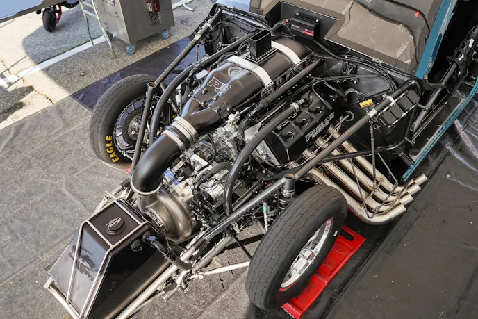 The next question we had was, in our experience, the beauty of a centrifugal supercharger is the smooth, linear powerband. By contrast, a Top Fuel car ramps up quickly and the clutch does all the slipping. “If you think about the use case, on the street side, the 10-speed automatic transmission keeps everything in a very narrow window of operation as well,” says Sipp.