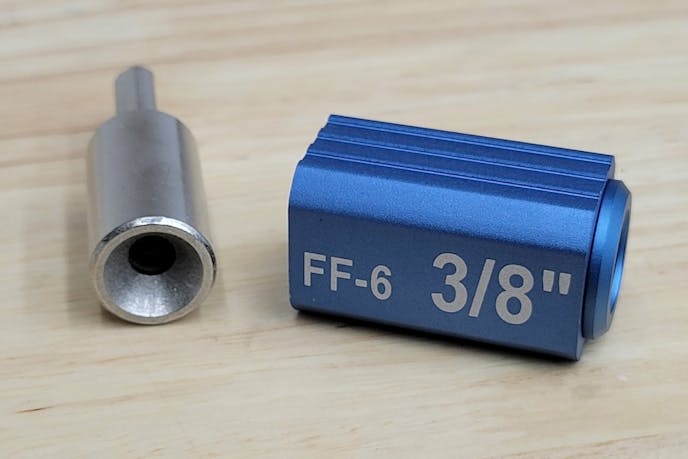 While the Fitting Fixer is designed to repair fittings that have been knicked, dinged, or otherwise have their mating surface compromised, we discussed another potential use with the Fitting Fixer’s inventor, Dick Raczuk. We’ve noticed that with the influx of inexpensive fittings on the market, the quality of the anodizing can be questionable. We have run into more instances of brand-new fittings leaking right out of the package than ever before. When we asked about using the Fitting Fixer (and Sureseat) on new fittings, just as a matter of course, he was positive on the idea.