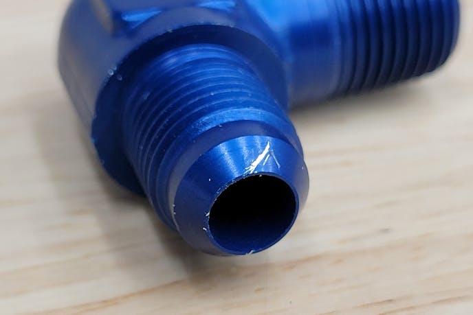While the Fitting Fixer is designed to repair fittings that have been knicked, dinged, or otherwise have their mating surface compromised, we discussed another potential use with the Fitting Fixer’s inventor, Dick Raczuk. We’ve noticed that with the influx of inexpensive fittings on the market, the quality of the anodizing can be questionable. We have run into more instances of brand-new fittings leaking right out of the package than ever before. When we asked about using the Fitting Fixer (and Sureseat) on new fittings, just as a matter of course, he was positive on the idea.