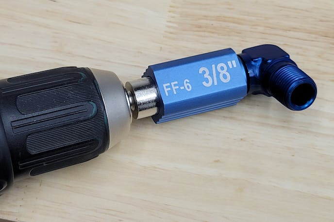 Made specifically for male aluminum or steel 37-degree flare fittings (more than just AN fittings) the Fitting Fixer consists of an alignment sleeve that threads onto the fitting in order to align the flare with the tool, and the driven lapping tool. Machined to a precise 37-degree inverted cone, the lapping tool is coated with diamond dust and fitted to a hexagonal shaft, allowing it to be chucked up in a hand drill or tap handle.