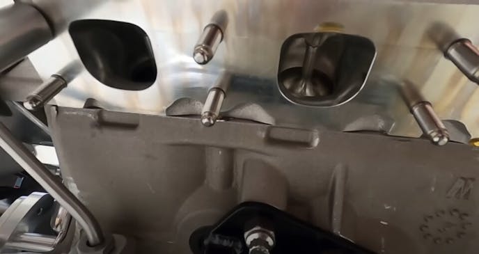 Apparently, all of the ARP bolts and studs used on the Cammer V8 are one-offs. Custom non-magnetic nuts, bolts, and washers from ARP are also utilized on sensor plates and other sensitive areas to prevent false readings.