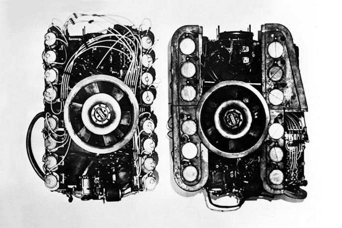 As for where this crazy crankshaft sent all that power, that was a tale of two very different directions. All of the juice sent to the upper intermediate shaft kept accessories like distributors and alternators firing properly and doubled as an assistant when engine timing was being determined and/or adjusted. The lower, stubbier output shaft on the other hand had the sole purpose of sending power to the pavement.