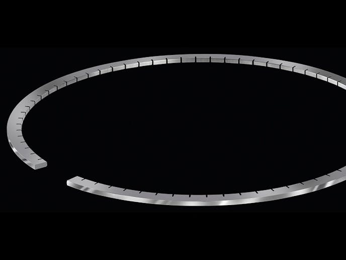 The other way cast iron rings are formed is similar to the way a model car or truck is manufactured. When you open up a model car box, you find several sheets of plastic that have pieces formed that you break from the mold to extract the parts. Cast iron is poured into a mold much like the model car pieces, only in the shape of piston rings. When the process is complete the rings are snapped from the mold and final-machined for use. While cast iron rings may be affordable due to the cost of the material, they do require a lot of hands-on machining in order to be processed and finalized. Also, there is a lot of waste that has to be recycled once the finished product is achieved.
