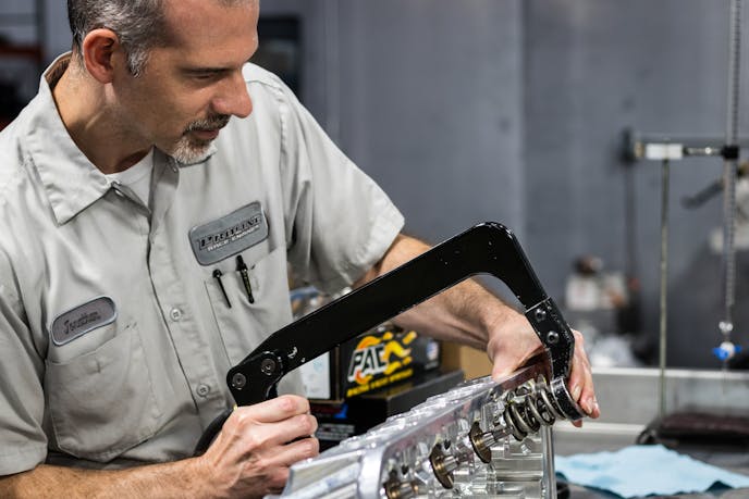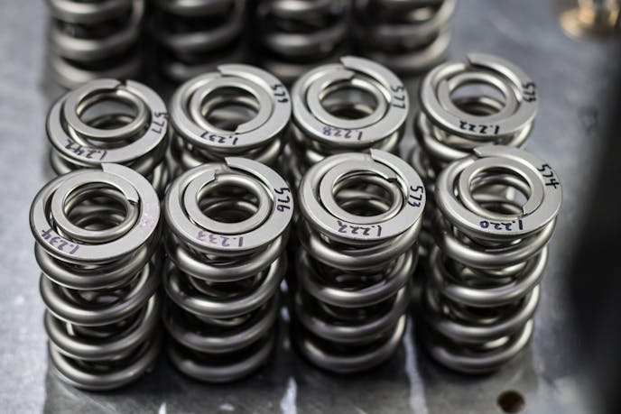 The Ferrea titanium valves measure the aforementioned 2.49-inch intake and 2.02-inch on the exhaust side. Just think about that for a second—a traditional small-block “street car” head would likely use a 2.02-inch intake valve. These valves are built with a high-temp alloy which is heat-treated and stress-relieved, and machined on Ferrea’s in-house machining centers.