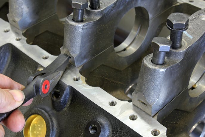 The more aggressive align-boring technique is generally reserved for main-cap conversions where iron or billet-steel four-bolt main caps will be added to a block. The most common option (on a V8 engine) is to convert the center three caps.