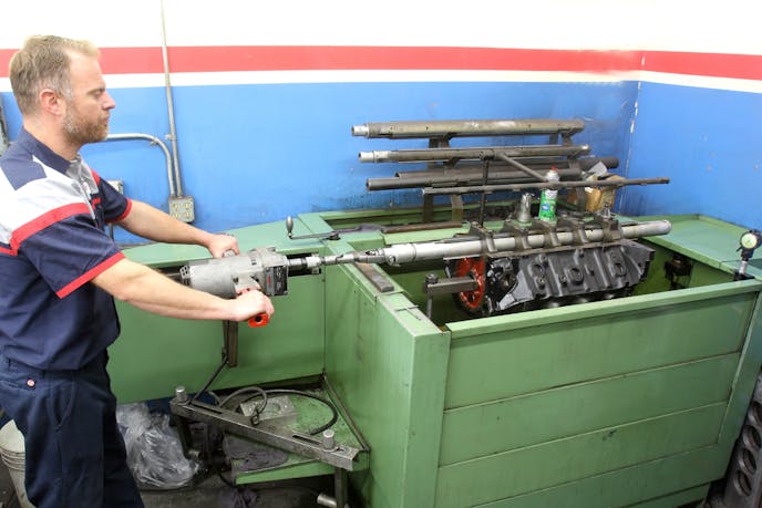 This reduces the inside diameter of the housing bore, giving the hone some meat to work with. The hone can be carefully passed through the now-smaller bores to open them up to the desired final inside diameter.