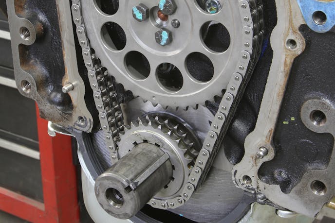 Align boring can move the main-bearing centerline perhaps as much as 0.005 inch. If the crank centerline moves closer to the camshaft, this will reduce the timing chain tension. To remedy this, Cloyes (among other companies), offers a 0.005-inch shorter chain option to eliminate that loss of tension if the centerline moves that far.
