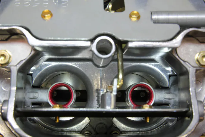 On the secondary side of things, this line of AVS and AVS2 carburetors gets its name from the spring-loaded door over the secondary venturi. Carter called this an Air-Valve Secondary (a slightly different “AVS” definition than Edelbrock). These carburetors are all actuated with mechanical secondary linkage yet they do not use a secondary accelerator pump circuit.