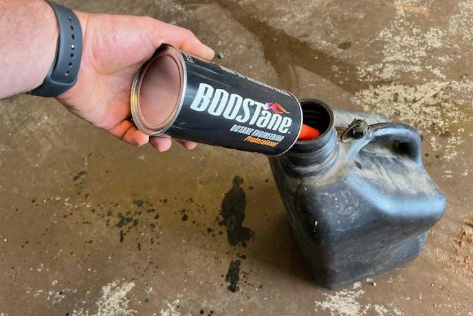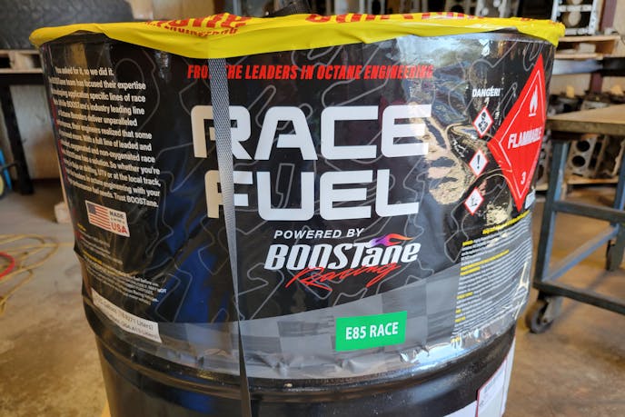 With our E85 numbers cemented, Keeter drained the fuel system of corn juice and replaced it with some of Wichita Falls’ finest premium pump gas (no jokes here, the Sunoco 93-Octane E10 gas really has proven its mettle on this engine dyno many times over). We went to Boostane’s website to open up the mixing calculator and found that to elevate our five-gallon jug of 93 to 104 octane, we’d need 32.75 fluid ounces. The cans of Boostane Professional are 32 fluid ounces, so we decided to just use one full can. Just for a fun calculation that got us 5 gallons of right at 104 octane fuel for just under $50, or $10 per gallon — just under half the cost of 104 unleaded at the time.