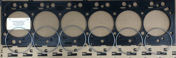 A customer can buy just the factory Cummins gasket and fire-rings in one of three standard fire-ring sizes, but custom fire-ring sizes are available upon request. It’s suitable for high-horsepower daily drivers, too. Some bigger tractor-pulling engines run a “C” ring, with the open part of the “C” facing the cylinder wall, and a spring in the void keeping the “C” open.