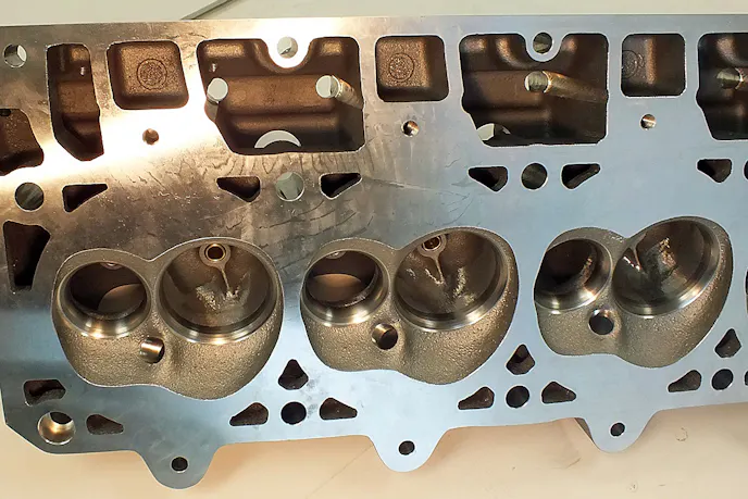 “With a stock valve in the head and no porting other than a bowl blend – which is what we do to all of our Pro1 heads – these flow just over 370 cfm on the intake side at .800-inch lift, but it’s the exhaust side that’s the killer,” explains Maskin. “These castings have 252 cfm of exhaust flow at .800-inch lift.”