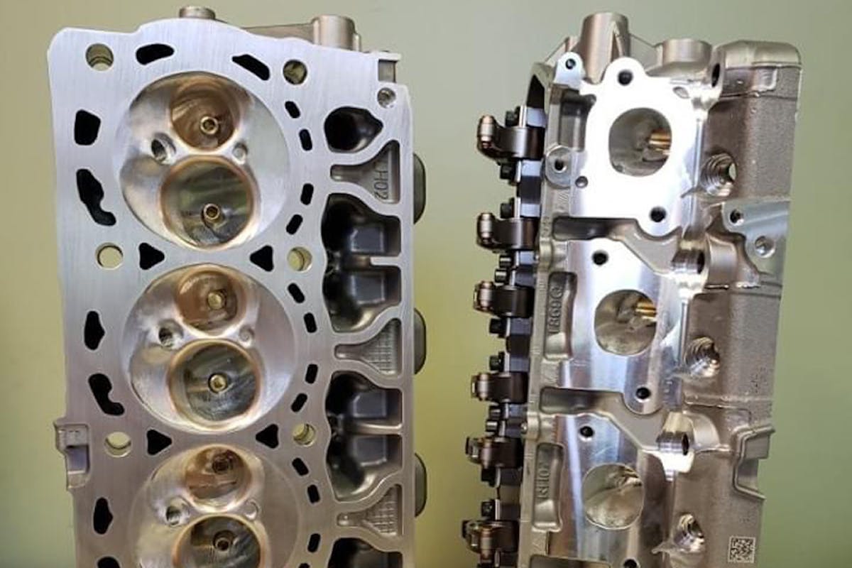 Dave Visner of Visner Engine Development worked his magic on the stock aluminum castings. The factory heads were CNC ported but no welding was done. This means the ports stayed in the stock location, yet still flowed almost 400 cfm (left, center). On the right are the Manton rockers used early on but later switched to Jesel.