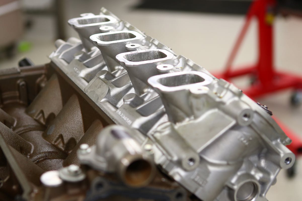 Godzilla’s magic lies in the design and architecture. It has a sturdy iron block with a 6-bolt main journal configuration for the forged-steel crankshaft (similar to the 4.6L DOHC and 5.0: Coyote). The heads flow 300 cfm stock and with the right porting, can flow upwards of 400 cfm (and that’s without any welding). The bellhousing pattern is the same as the Coyote and Mod Motor’s mounting pattern. In other words, Godzilla is ripe for making horsepower.
