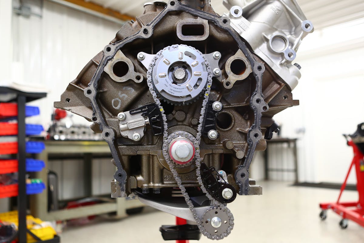 Other features from the factory include a 60mm cam bore, a chain-driven variable-volume oil pump and variable cam timing. Up top, Godzilla wears aluminum heads with big valves capable of making 600-plus horsepower with only a light clean-up on naturally aspirated combinations, and over 1,450 horsepower in fully ported trim with boost — which is impressive for stock castings.