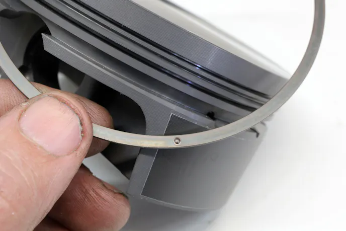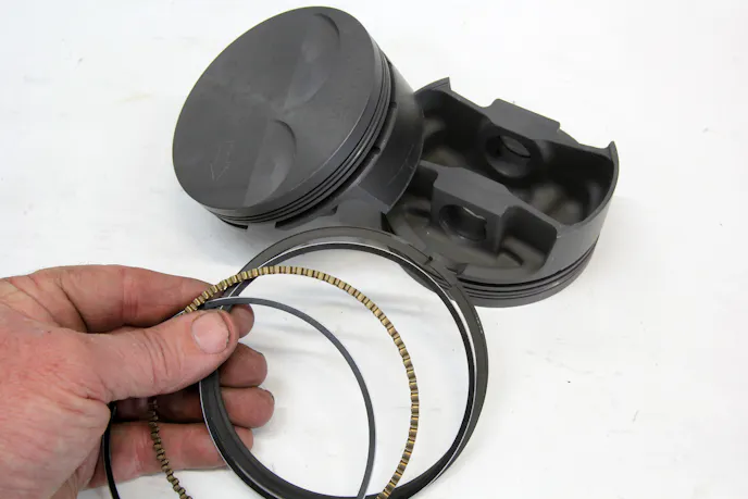 Nearly all current oil rings are created using a three-piece construction technique. The expander is the large center piece that is restrained with a pair of oil rings. The expander can be thought of as a spring that is loaded when installed in combination with the upper and lower oil rings. The oil rings’ function is to scrape oil off the cylinder wall and push it inward to oil return holes or slots cut on the inside of the piston’s oil ring groove.