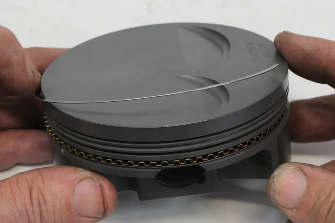 The first big revelation that Speed offered is that the oil ring’s vertical thickness has nothing to do with overall tension and ring drag. Oil control is created by a combination of the length of the expander and the radial width (as viewed from the top) of the oil rails. Speed says to think of the expander as a spring. If you place an expander inside its intended cylinder, the ends of the expander may not touch. But when the expander is squeezed between the two oil rails, the rails create the load much like adding a spacer under a valve spring to increase its tension on the valve.