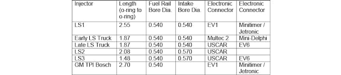 We’ve also created a chart listing all the physical injector dimensions. Combined with the accompanying images, the chart is probably the easiest way to differentiate and make sense of all the different GM injectors.