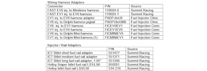 Swapping these newer, shorter injectors, in taller intake manifold applications opens up the opportunity for aluminum extension fittings that can increase the injector length to adapt these injectors to earlier applications. For example, ICT Billet offers three different length adapters for specific applications. We’ve listed their specs in a separate chart.