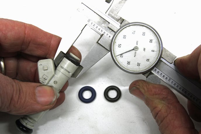 Another subtle change that occurred with the Gen IV LS3 style injector is the lower O-ring diameter which increased from 0.540-inch to 0.565-inch. These larger O-rings are sometimes distinguished by color. The AC Delco versions are blue for the 0.540-inch O-rings on the top while the larger 0.565-inch bottom O-rings are red. It’s important to keep track of these things because using a set of LS3 style injectors in an earlier engine will require changing the lower O-rings to the smaller version to allow the injector to seat properly in the manifold.