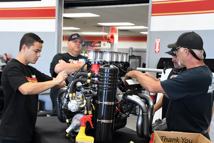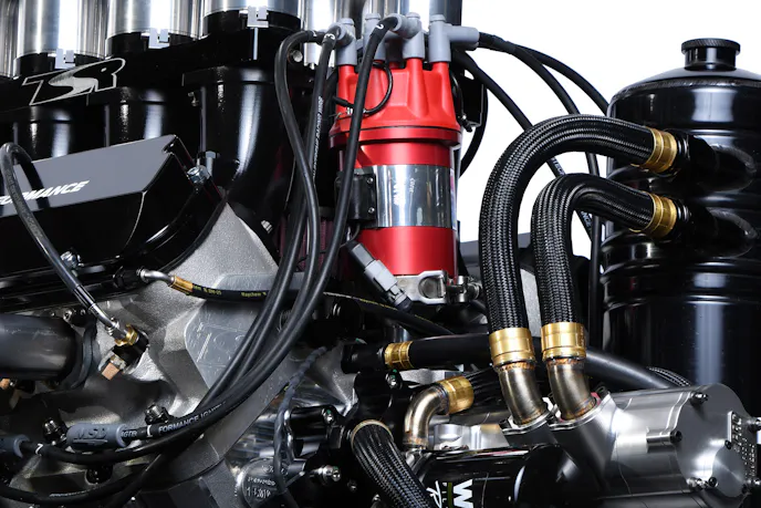 For spark, the team sends a basic MSD magneto to Magtech where it’s blueprinted and matched with a control box that receives signals from a crank-trigger system. The exhaust is routed through stepped tri-Y headers built by Schoenfeld. When required by local rules, Schoenfeld mufflers are added.