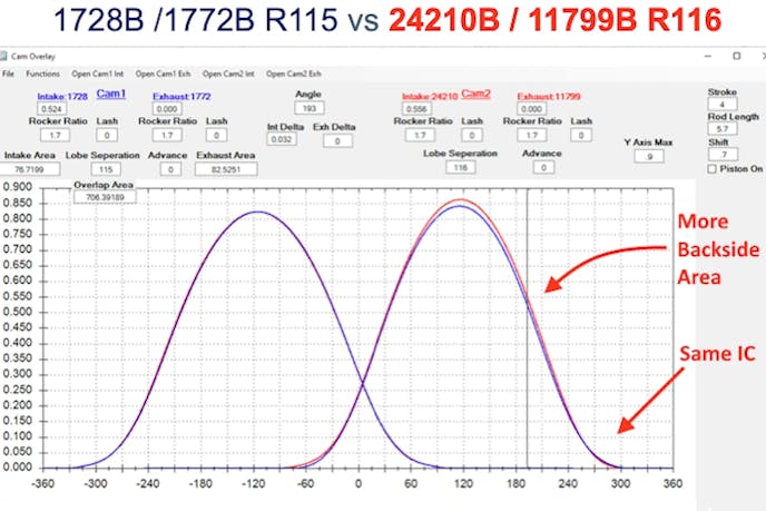 If additional lift is generated on this closing side, the cylinder will eventually trap more air after the intake valve closes. This will make more power. This is exactly what the LST cam lobe design accomplishes, while at the same time, offering improved valve control that also may not require as much valvespring load. The resulting lighter spring loads reduce strain on the valvetrain, which in turn, means everything will last longer.