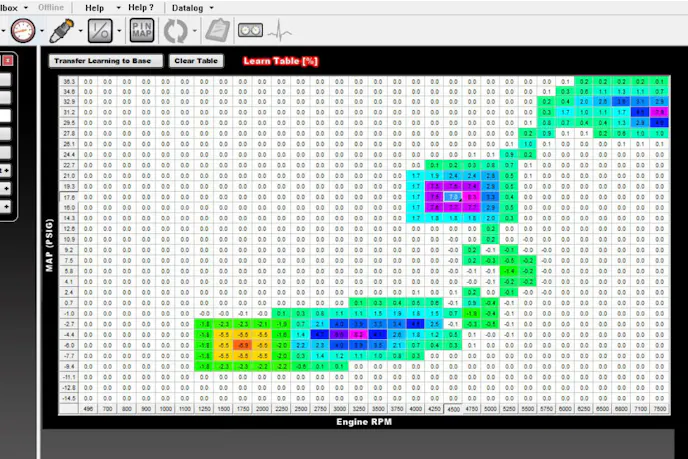 “It will apply the closed loop corrections for fuel based off of the target AFR and timing that you have specified. Then as it sees the closed loop it will populate a ‘learn table’ in the background. That table stays in there unless you clear it or transfer it to the base fuel map.” Bell does point out that while powerful, you still need to be on your game as a tuner. “Obviously, the closer you are with the fuel and timing map you start with, the more power you’ll make and smaller the corrections it makes will need to be.”