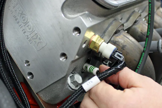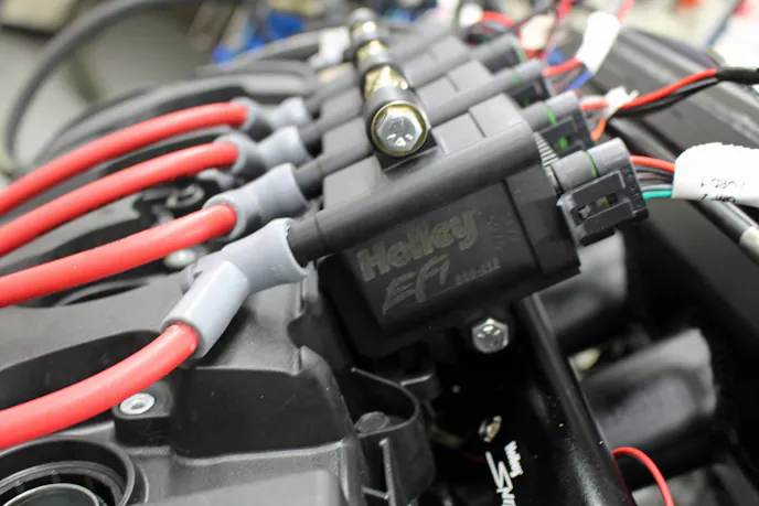 “We’re using the Holley Smart Coils to aid in spark for this engine, and they are a very strong coil with plenty of spark energy for this project,” says Bell. “And while the Dominator can control the variable cam timing for the Coyotes, these cams are mechanically locked out, so we don’t need to use that feature.”