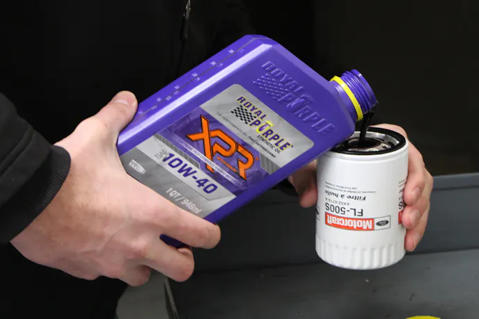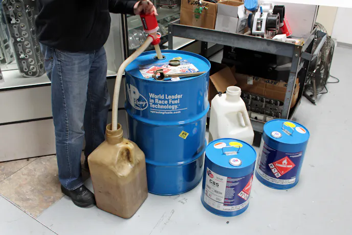 The break-in oil was drained, and replaced with Royal Purple XPR 10W-40 for the power pulls. The XPR — which stands for “eXtreme Performance Racing” — oil is Royal Purple’s premier line of performance engine lubricant. It is a full-synthetic oil that is formulated not only to withstand the rigors of a competition engine, but to also work well with alcohol-based fuels, resisting the dilution and displacement effects alcohol can have on engine oil. Since we’re using C85 fuel, that’s a big plus for us.