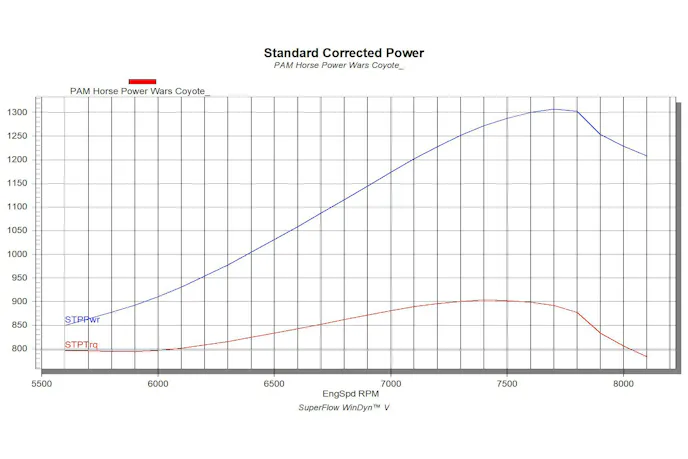 Coyote: 1,307.0 hp, 903.1 lb/ft – Combined total for score: 2,210.1