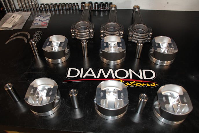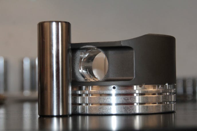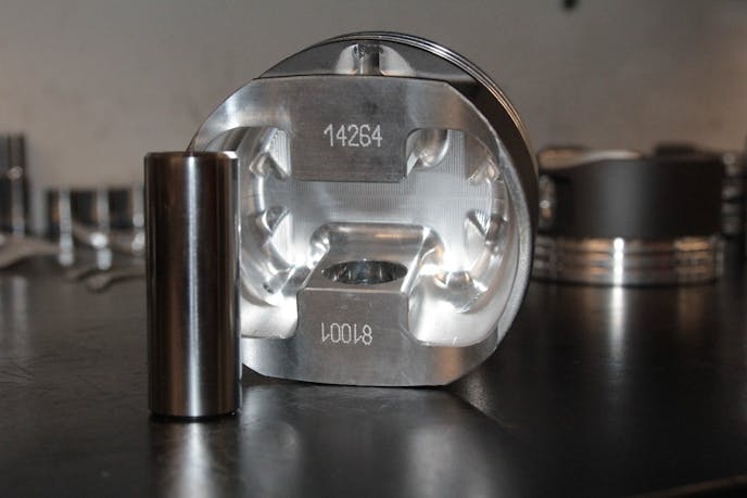 Handling the boost from what are often upgraded turbochargers can be challenging. In order to assure the pistons are capable of the incoming air/fuel charge, Diamond set the top ring land on the piston .250-inch down from the top of the piston, which leaves .200-inch material between the ring groove and the valve relief on the piston’s crown to ensure strength at the top. The second ring land is also .200-inch thick to help support the top groove.