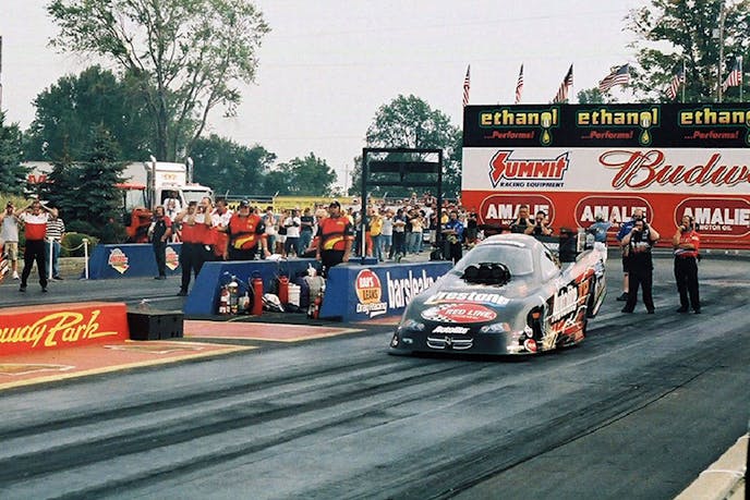 In blown alcohol drag racing, competitors with higher static compression usually have to run a richer mixture than those with lower static compression to inhibit detonation. However, there is a point at which the need for additional enrichment tapers off. One competitor reported that beyond a certain point in compression increases, further enrichment was not needed, while the engine made more power with more compression. He continued to raise compression further and achieved national record-running performance. At a certain point, the extra-high compression was actually preventing the formation of detonation-sensitive dissociates.