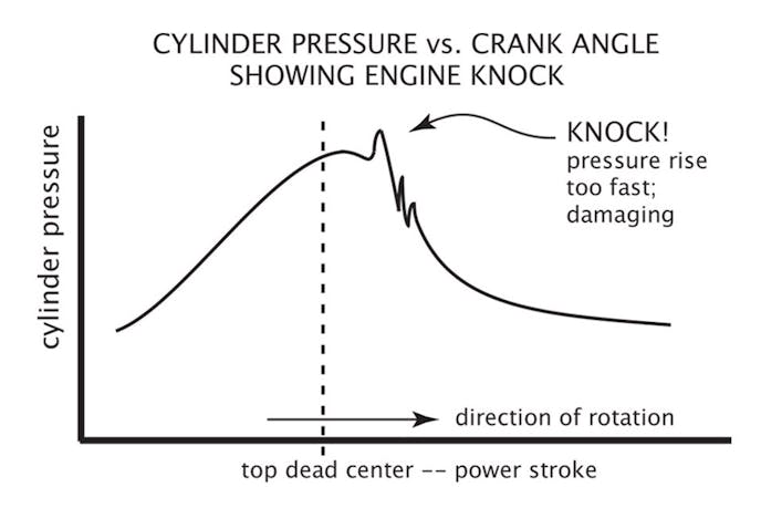 In the engine tuning world, detonation is defined as one of the following: combustion that causes engine damage; combustion that causes banging or pinging noises; or combustion that causes power loss, bucking, or kicking. Detonation is not controlled and often unwanted. It occurs when fuel in the cylinder auto-ignites outside the intended flame front of the spark ignition.