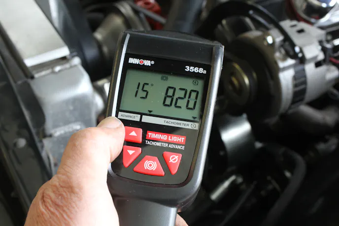 For this example, let’s assume it runs fine on 91-octane pump gas but we have to pull the timing back three degrees of total timing (from 36 to 33 degrees) to prevent the engine from rattling (detonating) on hot days. Let’s also put the jetting at 75 primary and 83 secondaries with no power valve in the secondary side.