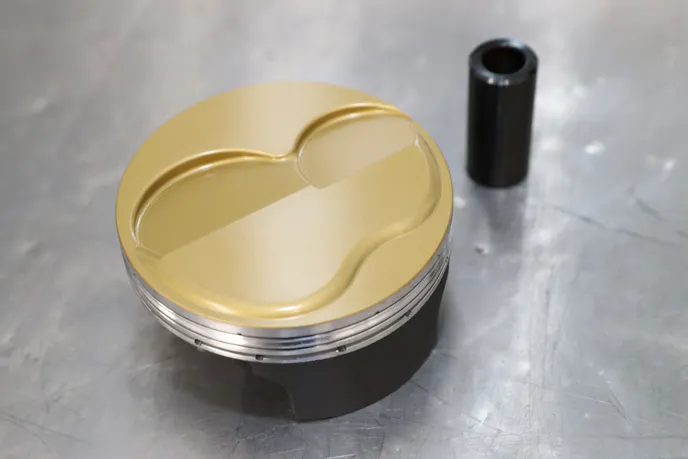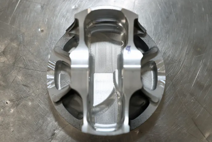 A combination of attributes is required in addition to the forging to make the piston that light. A fully machined crown eliminates sharp edges and promotes flame propagation, while the thermal barrier crown coating reflects heat back into the chamber. The undercrown of the piston is also machined to provide a perfectly even crown thickness.