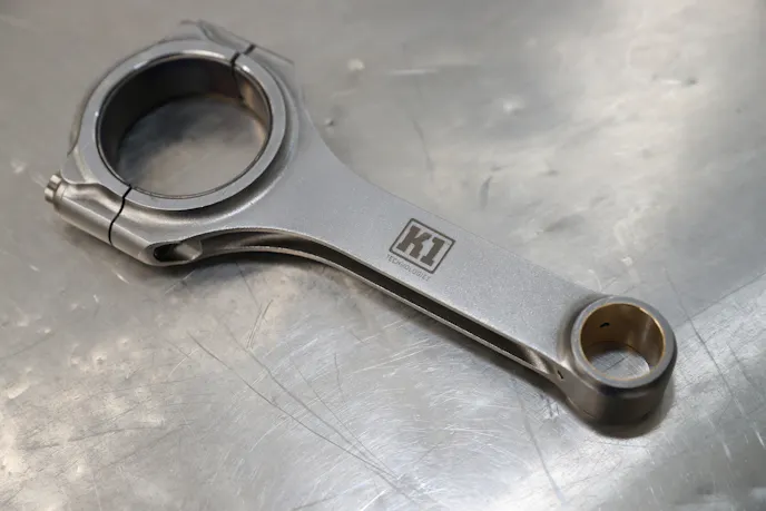 Hanging off of the crankshaft is a set of K1 Technologies 6.125-inch LS connecting rods. We wanted an affordable but light H-beam road to reduce our reciprocating weight and the K1’s checked all the boxes. The forged 4340 steel rods come fully finished and weigh-in around 660 grams each. Due to the expected RPM range of this engine, we opted to swap out the ARP 2000 rod bolts that come standard, for a set of high strength ARP Custom Age 625-plus rod bolts. These stronger bolts will provide peace-of-mind above 8,000 rpm and require a whopping 100 lb-ft of torque to achieve the proper bolt stretch of .0058-.0060 inch. Upgrading to the 625+ bolts did require us to have QMP rehone the big ends of the rods.