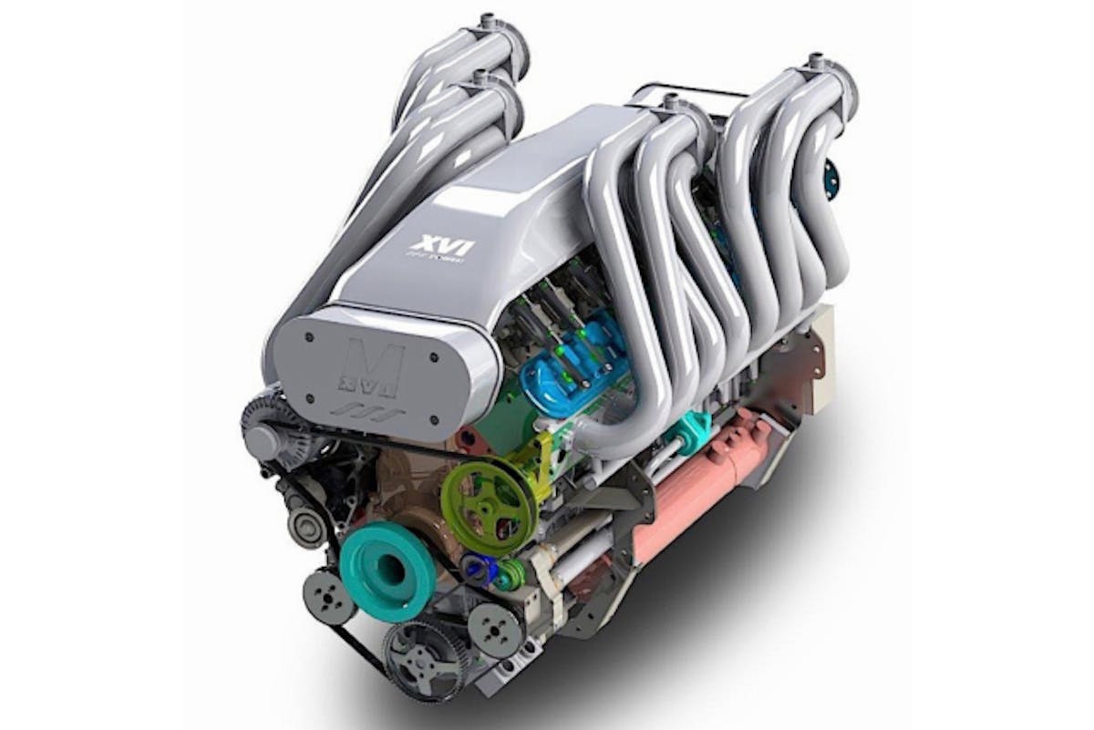 Designed for powerboats up to 55 feet in length, the V16 engine will make from 1,200 to 1,400 horsepower naturally aspirated.