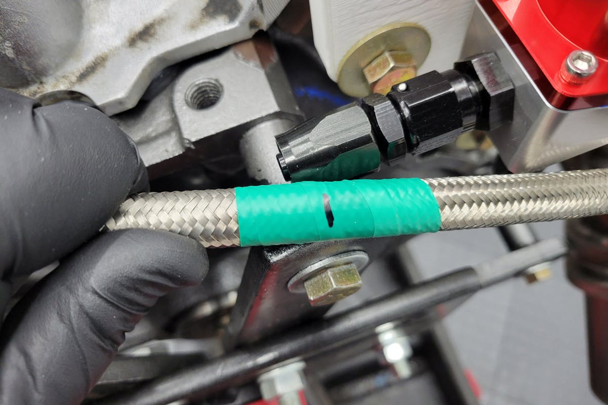 The best way to learn how to plumb a car is through hands-on experience (nothing to it but to do it), but we’ll walk you through the process. The first step is crucial and isn’t even technically part of the assembly process, and that is measuring the hose. You’ll want to measure at least twice before you cut once and thoughtfully plan out your runs, mitigating any sharp turns by using angled fittings instead of trying to bend the hose in tight radii.