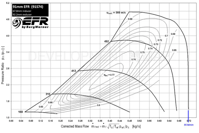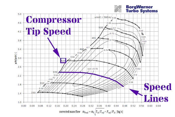 Last year we put together an article that highlights some of the pitfalls associated with doing research on forums, and how altitude affects turbocharger performance. We figured we would follow that article up and explain what a compressor map is and how to read it. “A compressor map shows mass flow, pressure ratio, speed, and efficiency. It can be thought of as a dyno output/chart for the compressor stage independent of the engine it’s run on” says Seth Temple Applications Engineer for BorgWarner.
